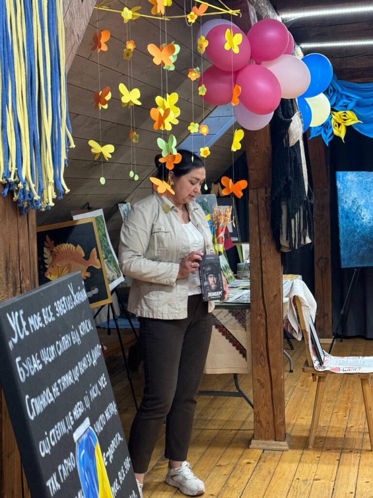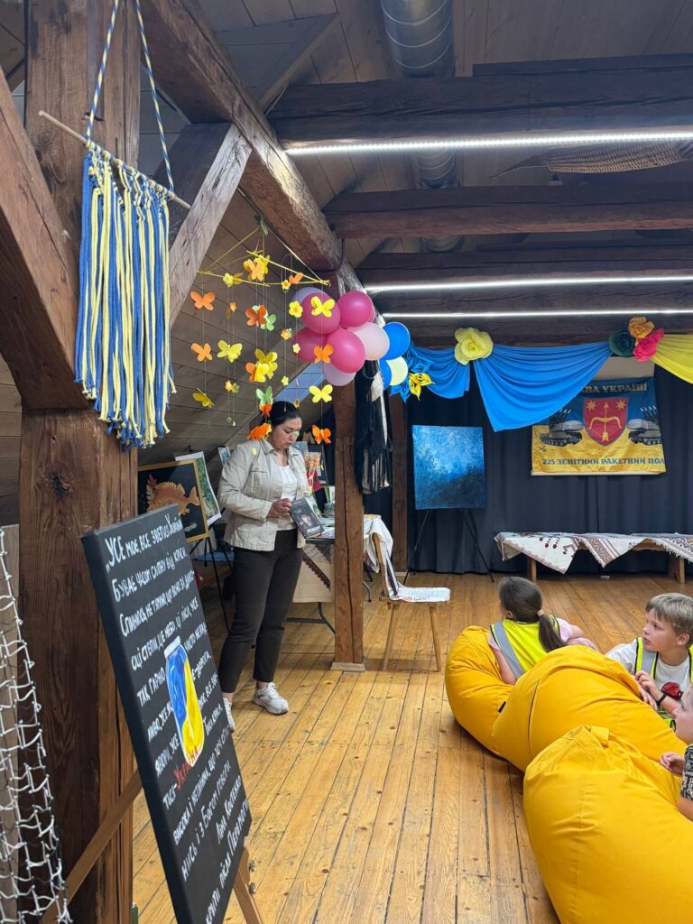 Розповіли про подорож деяких експонатів до нашого музею; яке значення музей має для українців, які живуть за кордоном; про майстер-класи та творчі заходи, які проводимо тут. Також маленькі помічники потрапили на майстер-клас з плетіння маскувальних сіток для захисту наших Героїв.